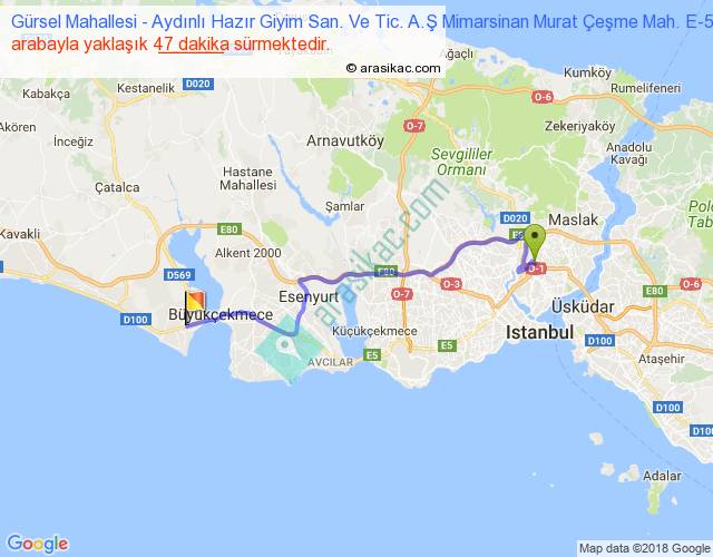 Gürsel Mahallesi - Aydınlı Hazır Giyim San. Ve Tic. A.Ş Mimarsinan Murat Çeşme Mah. E-5 arası detaylı bilgi