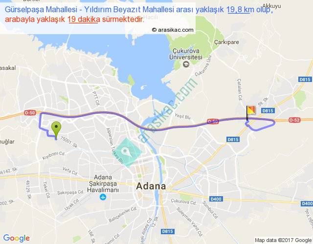 Gürselpaşa Mahallesi - Yıldırım Beyazıt Mahallesi arası yaklaşık olarak 90 km/h ile yukarıda belirtilen sürede olup, iki yerin kuş uçuşu uzaklığı (mesafesi) 12'dir. Yolculuk otobüsle 24 dakika sürmektedir.