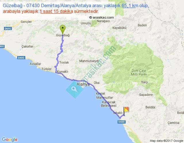 Eğer Güzelbağ 07430 Demirtaş Alanya Antalya arası ne kadar yakar (benzin/mazot) diyorsanız, kilometrede 3 ₺ yakan bir aracınız var ise 195, km'de 4 ₺ yakan bir aracınız var ise 260, km'de 5 ₺ yakan bir aracınız var ise 325 ile bu yolculuğu tamamlayabilirsiniz.