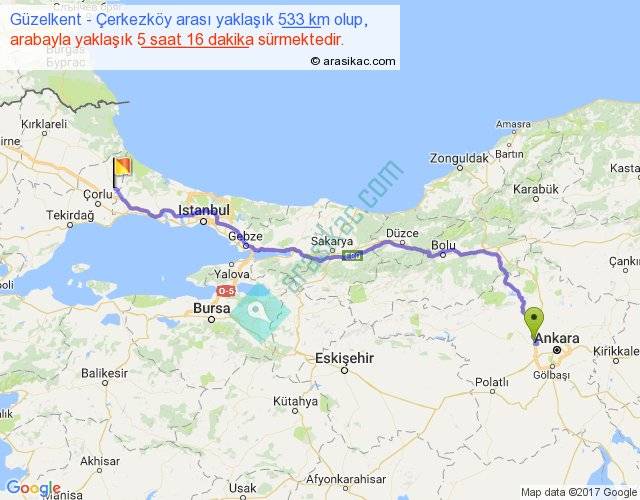 Eğer Güzelkent Çerkezköy arası ne kadar yakar (benzin/mazot) diyorsanız, kilometrede 3 ₺ yakan bir aracınız var ise 1599, km'de 4 ₺ yakan bir aracınız var ise 2132, km'de 5 ₺ yakan bir aracınız var ise 2665 ile bu yolculuğu tamamlayabilirsiniz.