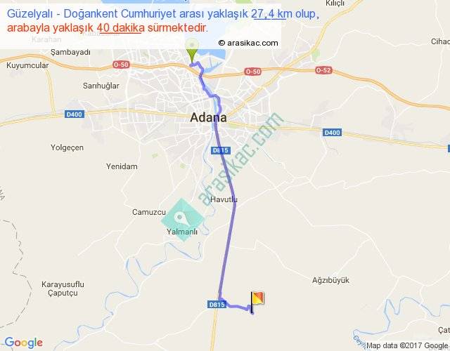 Güzelyalı - Doğankent Cumhuriyet arası yaklaşık olarak 90 km/h ile yukarıda belirtilen sürede olup, iki yerin kuş uçuşu uzaklığı (mesafesi) 22'dir. Yolculuk otobüsle 52 dakika sürmektedir.