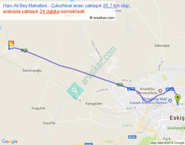 Hacı Ali Bey Mahallesi - Çukurhisar arası yaklaşık olarak 90 km/h ile yukarıda belirtilen sürede olup, iki yerin kuş uçuşu uzaklığı (mesafesi) 18'dir. Yolculuk otobüsle 31 dakika sürmektedir.