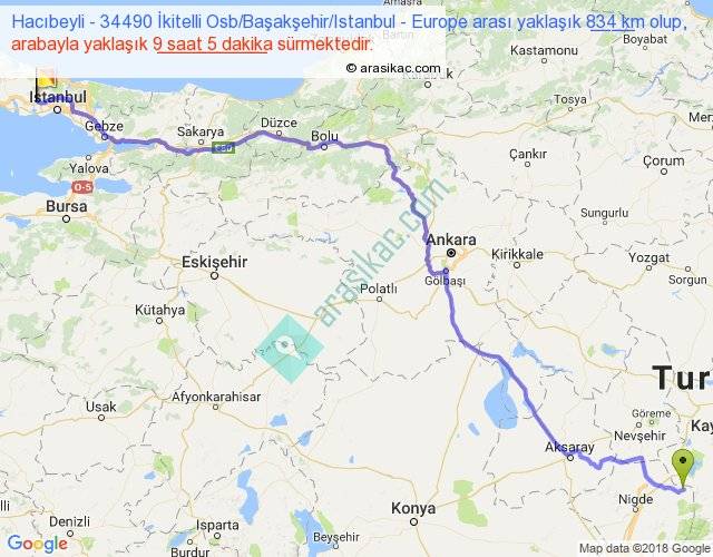 Hacıbeyli - 34490 İkitelli Osb Başakşehir Istanbul - Europe arası yaklaşık olarak 90 km/h ile yukarıda belirtilen sürede olup, iki yerin kuş uçuşu uzaklığı (mesafesi) 632'dir. Eğer belirtilen yerler arasında uçak seferi var ise bu süre uçakla 58 dakika'ya kadar düşebilir. Yolculuk otobüsle 11 saat 48 dakika sürmektedir.