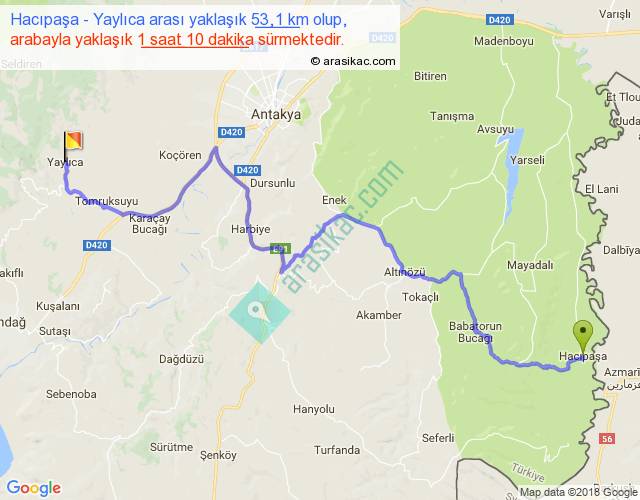 Hacıpaşa - Yaylıca arası yaklaşık olarak 90 km/h ile yukarıda belirtilen sürede olup, iki yerin kuş uçuşu uzaklığı (mesafesi) 34'dir. Yolculuk otobüsle 1 saat 31 dakika sürmektedir.