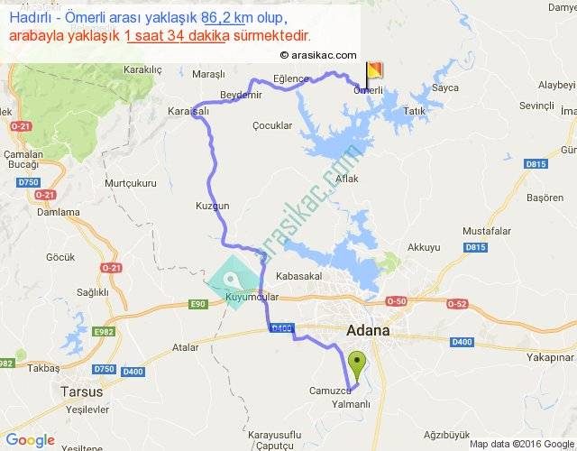 Hadırlı - Ömerli arası yaklaşık olarak 90 km/h ile yukarıda belirtilen sürede olup, iki yerin kuş uçuşu uzaklığı (mesafesi) 39'dir. Yolculuk otobüsle 2 saat 2 dakika sürmektedir.