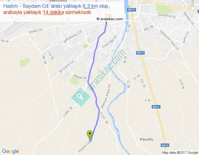 Hadırlı - Saydam Cd. arası yaklaşık olarak 90 km/h ile yukarıda belirtilen sürede olup, iki yerin kuş uçuşu uzaklığı (mesafesi) 6'dir. Yolculuk otobüsle 18 dakika sürmektedir.