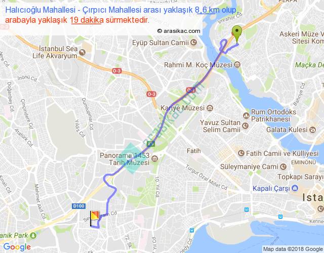 Eğer Halıcıoğlu Mahallesi Çırpıcı Mahallesi arası ne kadar yakar (benzin/mazot) diyorsanız, kilometrede 3 ₺ yakan bir aracınız var ise 24, km'de 4 ₺ yakan bir aracınız var ise 32, km'de 5 ₺ yakan bir aracınız var ise 40 ile bu yolculuğu tamamlayabilirsiniz.