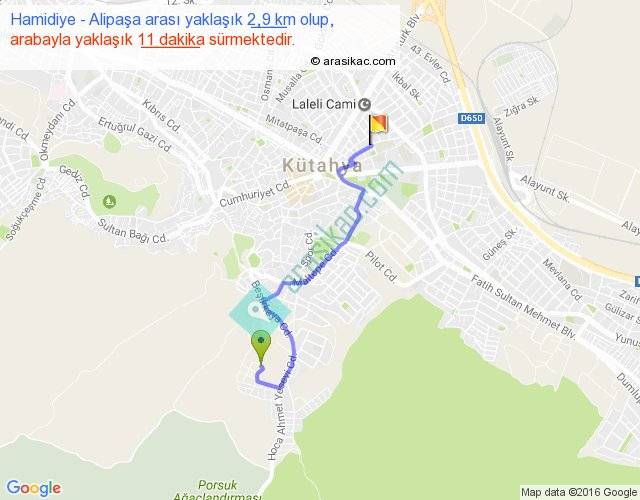 Hamidiye - Alipaşa arası yaklaşık olarak 90 km/h ile yukarıda belirtilen sürede olup, iki yerin kuş uçuşu uzaklığı (mesafesi) 2'dir. Yolculuk otobüsle 14 dakika sürmektedir.