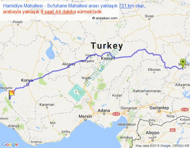 Hamidiye Mahallesi - Sofuhane Mahallesi arası yaklaşık olarak 90 km/h ile yukarıda belirtilen sürede olup, iki yerin kuş uçuşu uzaklığı (mesafesi) 567'dir. Eğer belirtilen yerler arasında uçak seferi var ise bu süre uçakla 52 dakika'ya kadar düşebilir. Yolculuk otobüsle 11 saat 21 dakika sürmektedir.