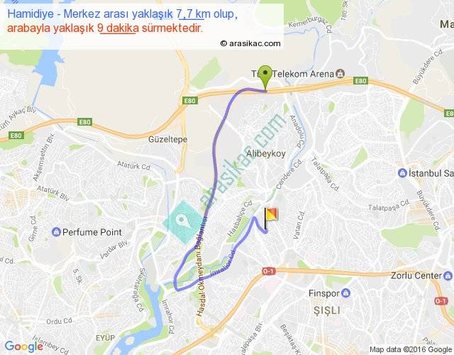 Hamidiye - Merkez arası yaklaşık olarak 90 km/h ile yukarıda belirtilen sürede olup, iki yerin kuş uçuşu uzaklığı (mesafesi) 3'dir. Yolculuk otobüsle 11 dakika sürmektedir.