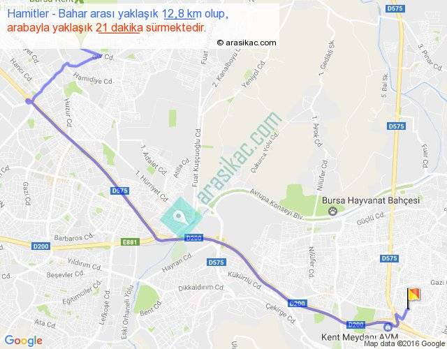 Hamitler - Bahar arası yaklaşık olarak 90 km/h ile yukarıda belirtilen sürede olup, iki yerin kuş uçuşu uzaklığı (mesafesi) 9'dir. Yolculuk otobüsle 27 dakika sürmektedir.