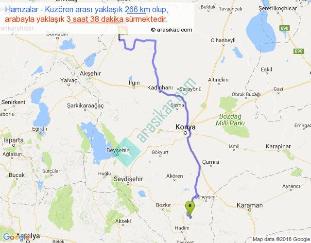Hamzalar - Kuzören arası yaklaşık olarak 90 km/h ile yukarıda belirtilen sürede olup, iki yerin kuş uçuşu uzaklığı (mesafesi) 188'dir. Yolculuk otobüsle 4 saat 43 dakika sürmektedir.