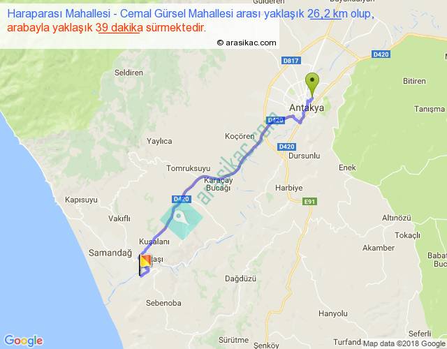 Haraparası Mahallesi - Cemal Gürsel Mahallesi arası yaklaşık olarak 90 km/h ile yukarıda belirtilen sürede olup, iki yerin kuş uçuşu uzaklığı (mesafesi) 22'dir. Yolculuk otobüsle 50 dakika sürmektedir.