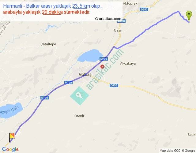 Harmanli - Balkar arası yaklaşık olarak 90 km/h ile yukarıda belirtilen sürede olup, iki yerin kuş uçuşu uzaklığı (mesafesi) 21'dir. Yolculuk otobüsle 37 dakika sürmektedir.