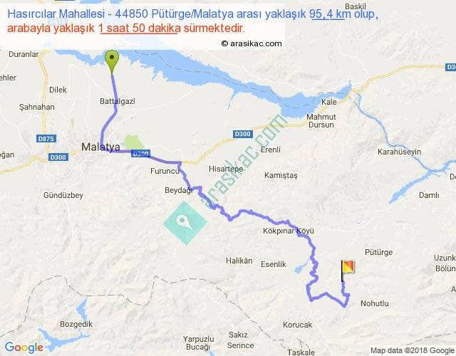 Hasırcılar Mahallesi - 44850 Pütürge Malatya arası yaklaşık olarak 90 km/h ile yukarıda belirtilen sürede olup, iki yerin kuş uçuşu uzaklığı (mesafesi) 52'dir. Yolculuk otobüsle 2 saat 23 dakika sürmektedir.
