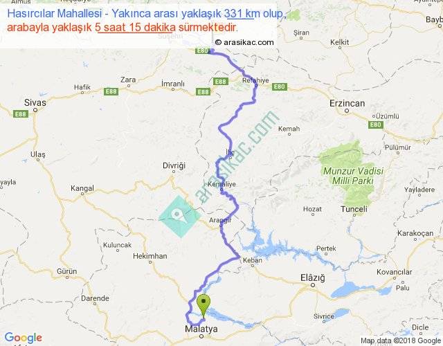Hasırcılar Mahallesi - Yakınca arası yaklaşık olarak 90 km/h ile yukarıda belirtilen sürede olup, iki yerin kuş uçuşu uzaklığı (mesafesi) 187'dir. Yolculuk otobüsle 6 saat 49 dakika sürmektedir.