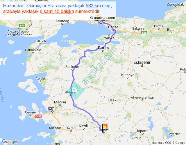 Eğer Haznedar Gümüşler Blv. arası ne kadar yakar (benzin/mazot) diyorsanız, kilometrede 3 ₺ yakan bir aracınız var ise 1749, km'de 4 ₺ yakan bir aracınız var ise 2332, km'de 5 ₺ yakan bir aracınız var ise 2915 ile bu yolculuğu tamamlayabilirsiniz.