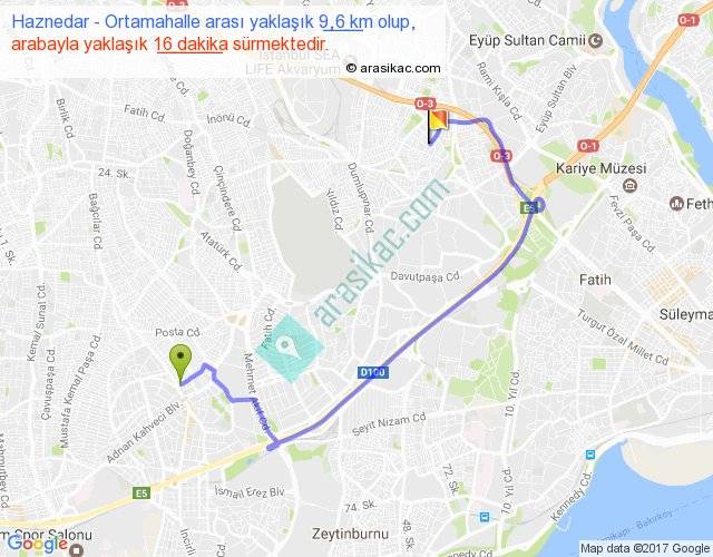 Haznedar - Ortamahalle arası yaklaşık olarak 90 km/h ile yukarıda belirtilen sürede olup, iki yerin kuş uçuşu uzaklığı (mesafesi) 4'dir. Yolculuk otobüsle 20 dakika sürmektedir.