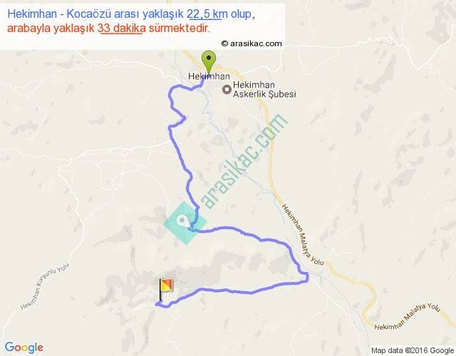 Hekimhan - Kocaözü arası yaklaşık olarak 90 km/h ile yukarıda belirtilen sürede olup, iki yerin kuş uçuşu uzaklığı (mesafesi) 10'dir. Yolculuk otobüsle 42 dakika sürmektedir.