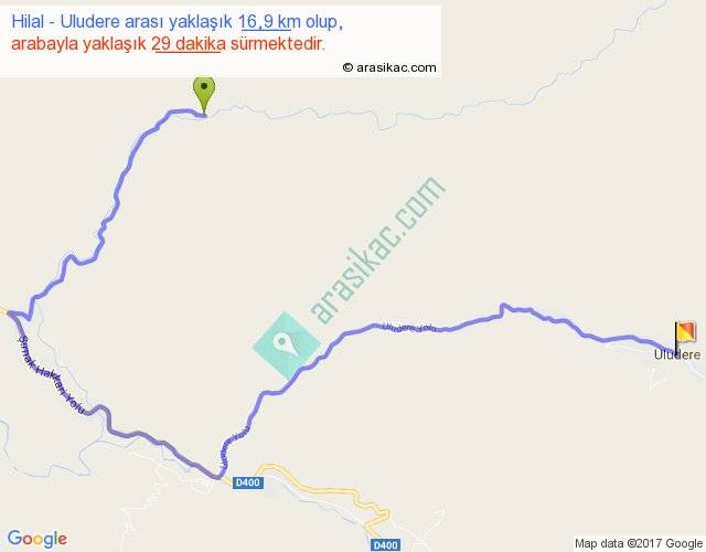 Hilal - Uludere arası yaklaşık olarak 90 km/h ile yukarıda belirtilen sürede olup, iki yerin kuş uçuşu uzaklığı (mesafesi) 7'dir. Yolculuk otobüsle 37 dakika sürmektedir.