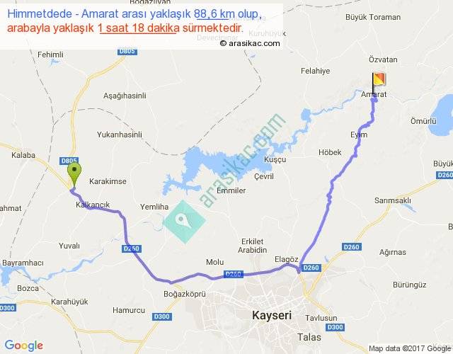Himmetdede - Amarat arası yaklaşık olarak 90 km/h ile yukarıda belirtilen sürede olup, iki yerin kuş uçuşu uzaklığı (mesafesi) 52'dir. Yolculuk otobüsle 1 saat 41 dakika sürmektedir.