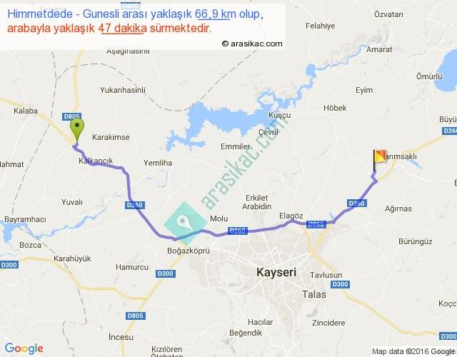 Himmetdede - Gunesli arası yaklaşık olarak 90 km/h ile yukarıda belirtilen sürede olup, iki yerin kuş uçuşu uzaklığı (mesafesi) 49'dir. Yolculuk otobüsle 1 saat 1 dakika sürmektedir.