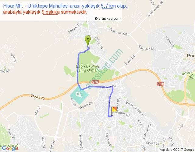Hisar Mh. - Ufuktepe Mahallesi arası detaylı bilgi