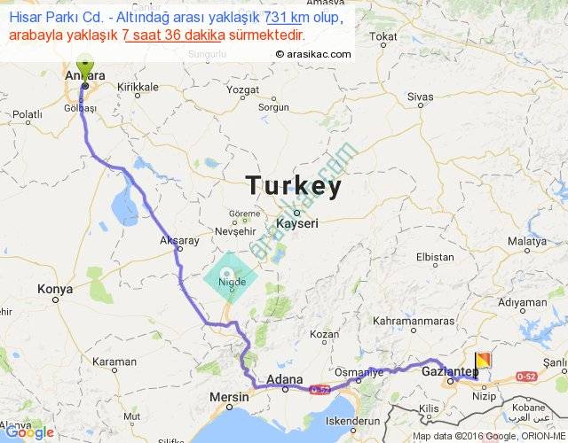 Hisar Parkı Cd. - Altındağ arası yaklaşık olarak 90 km/h ile yukarıda belirtilen sürede olup, iki yerin kuş uçuşu uzaklığı (mesafesi) 524'dir. Eğer belirtilen yerler arasında uçak seferi var ise bu süre uçakla 48 dakika'ya kadar düşebilir. Yolculuk otobüsle 9 saat 52 dakika sürmektedir.