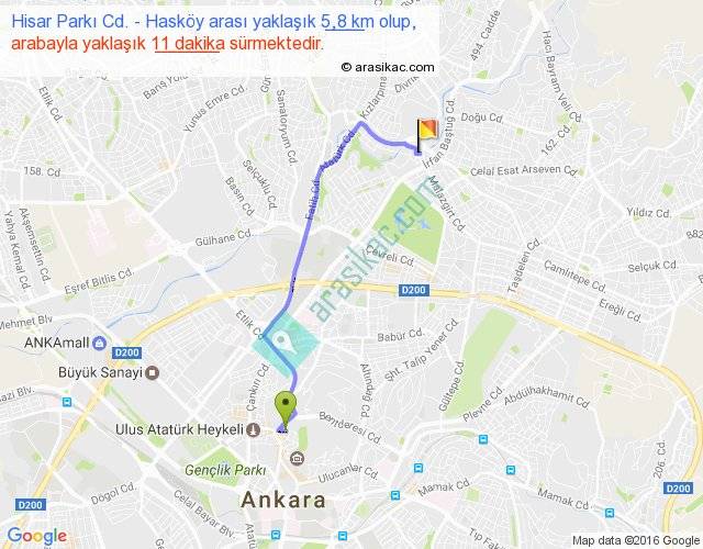Eğer Hisar Parkı Cd. Hasköy arası ne kadar yakar (benzin/mazot) diyorsanız, kilometrede 3 ₺ yakan bir aracınız var ise 15, km'de 4 ₺ yakan bir aracınız var ise 20, km'de 5 ₺ yakan bir aracınız var ise 25 ile bu yolculuğu tamamlayabilirsiniz.