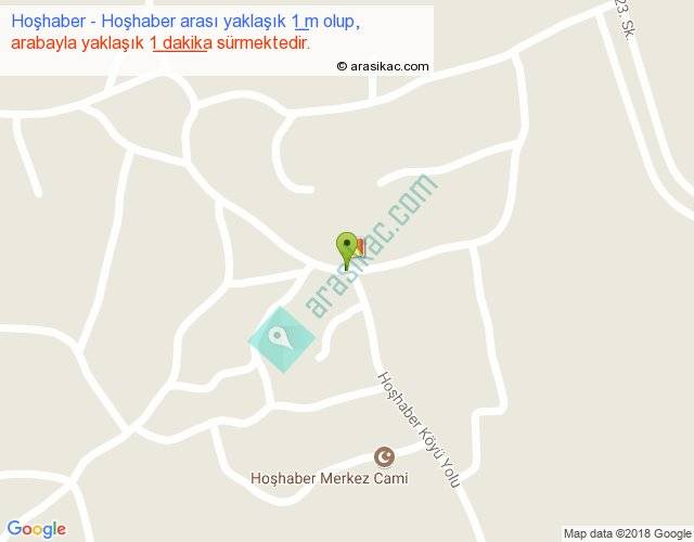 Hoşhaber - Hoşhaber arası yaklaşık olarak 90 km/h ile yukarıda belirtilen sürede olup, iki yerin kuş uçuşu uzaklığı (mesafesi) 0'dir. Yolculuk otobüsle 1 dakika sürmektedir.