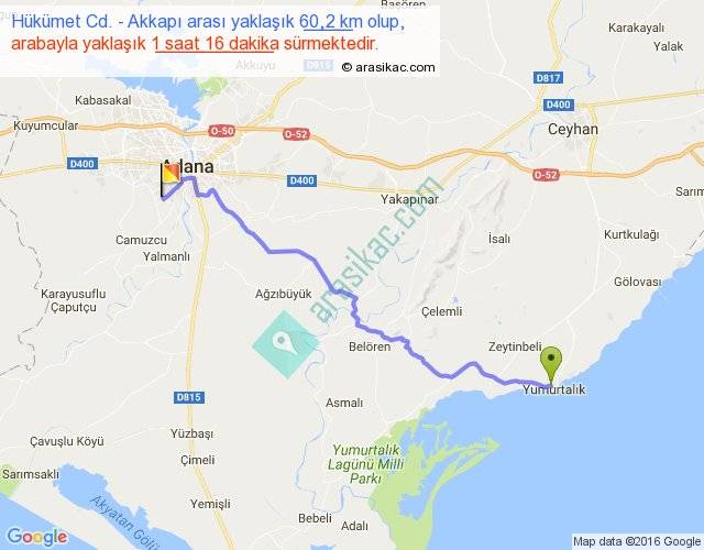 Hükümet Cd. - Akkapı arası yaklaşık olarak 90 km/h ile yukarıda belirtilen sürede olup, iki yerin kuş uçuşu uzaklığı (mesafesi) 48'dir. Yolculuk otobüsle 1 saat 38 dakika sürmektedir.