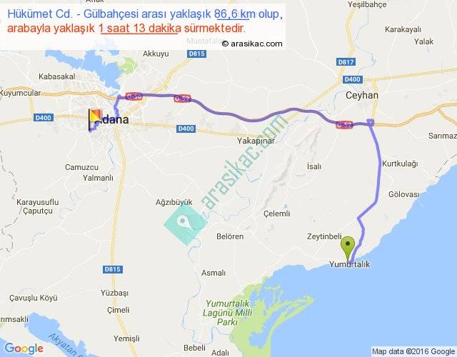 Eğer Hükümet Cd. Gülbahçesi arası ne kadar yakar (benzin/mazot) diyorsanız, kilometrede 3 ₺ yakan bir aracınız var ise 258, km'de 4 ₺ yakan bir aracınız var ise 344, km'de 5 ₺ yakan bir aracınız var ise 430 ile bu yolculuğu tamamlayabilirsiniz.