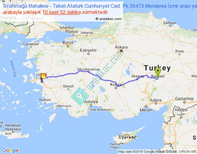 İbrahimağa Mahallesi - Tekelı Ataturk Cumhurıyet Cad. Pk:35473 Menderes İzmir arası detaylı bilgi