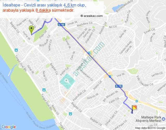 İdealtepe - Cevizli arası yaklaşık olarak 90 km/h ile yukarıda belirtilen sürede olup, iki yerin kuş uçuşu uzaklığı (mesafesi) 4'dir. Yolculuk otobüsle 10 dakika sürmektedir.