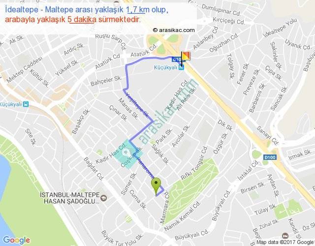 İdealtepe - Maltepe arası yaklaşık olarak 90 km/h ile yukarıda belirtilen sürede olup, iki yerin kuş uçuşu uzaklığı (mesafesi) 1'dir. Yolculuk otobüsle 6 dakika sürmektedir.