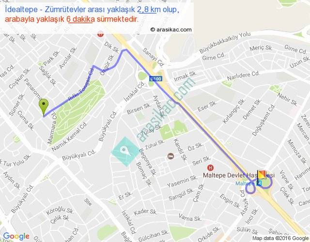 İdealtepe - Zümrütevler arası yaklaşık olarak 90 km/h ile yukarıda belirtilen sürede olup, iki yerin kuş uçuşu uzaklığı (mesafesi) 2'dir. Yolculuk otobüsle 7 dakika sürmektedir.