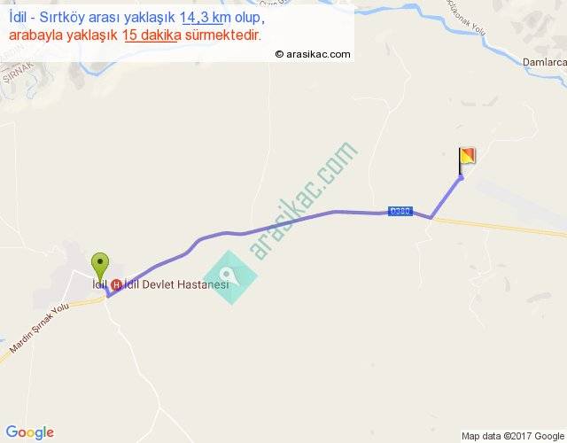 İdil - Sırtköy arası yaklaşık olarak 90 km/h ile yukarıda belirtilen sürede olup, iki yerin kuş uçuşu uzaklığı (mesafesi) 13'dir. Yolculuk otobüsle 19 dakika sürmektedir.