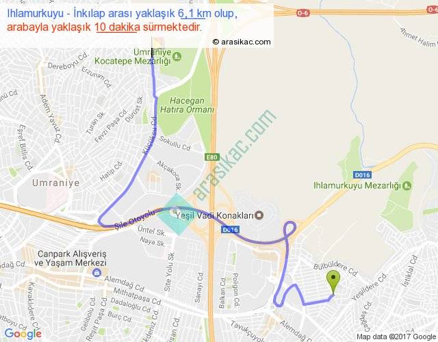 Eğer Ihlamurkuyu İnkılap arası ne kadar yakar (benzin/mazot) diyorsanız, kilometrede 3 ₺ yakan bir aracınız var ise 18, km'de 4 ₺ yakan bir aracınız var ise 24, km'de 5 ₺ yakan bir aracınız var ise 30 ile bu yolculuğu tamamlayabilirsiniz.