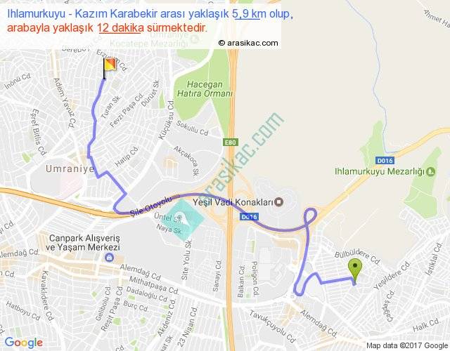 Ihlamurkuyu - Kazım Karabekir arası yaklaşık olarak 90 km/h ile yukarıda belirtilen sürede olup, iki yerin kuş uçuşu uzaklığı (mesafesi) 3'dir. Yolculuk otobüsle 15 dakika sürmektedir.