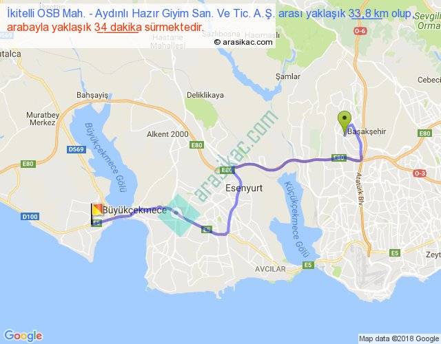 İkitelli OSB Mah. - Aydınlı Hazır Giyim San. Ve Tic. A.Ş. arası detaylı bilgi