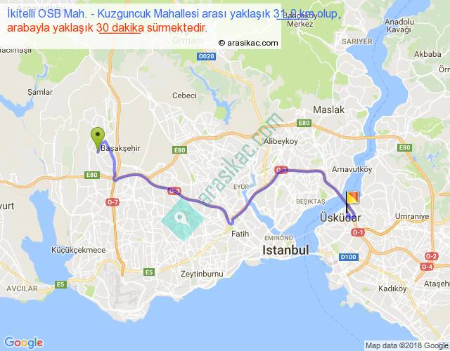 İkitelli OSB Mah. - Kuzguncuk Mahallesi arası detaylı bilgi