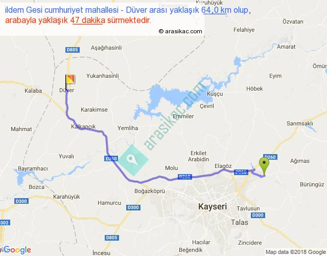 ildem Gesi cumhuriyet mahallesi - Düver arası yaklaşık olarak 90 km/h ile yukarıda belirtilen sürede olup, iki yerin kuş uçuşu uzaklığı (mesafesi) 50'dir. Yolculuk otobüsle 1 saat 1 dakika sürmektedir.