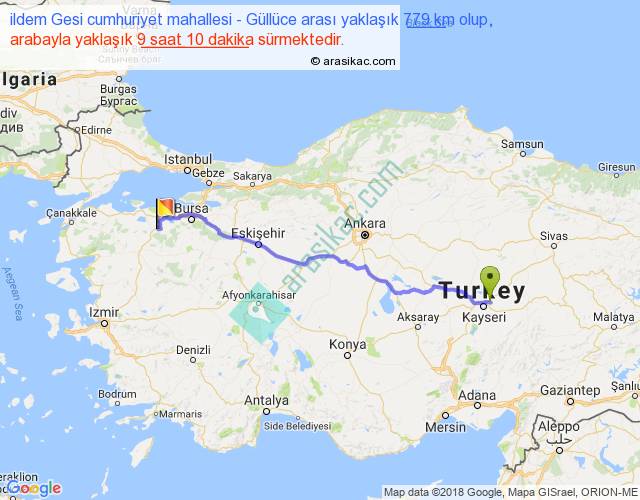 ildem Gesi cumhuriyet mahallesi - Güllüce arası yaklaşık olarak 90 km/h ile yukarıda belirtilen sürede olup, iki yerin kuş uçuşu uzaklığı (mesafesi) 639'dir. Eğer belirtilen yerler arasında uçak seferi var ise bu süre uçakla 58 dakika'ya kadar düşebilir. Yolculuk otobüsle 11 saat 55 dakika sürmektedir.