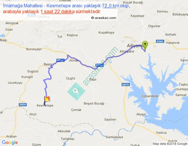 İmamağa Mahallesi - Kesmetepe arası yaklaşık olarak 90 km/h ile yukarıda belirtilen sürede olup, iki yerin kuş uçuşu uzaklığı (mesafesi) 47'dir. Yolculuk otobüsle 1 saat 46 dakika sürmektedir.