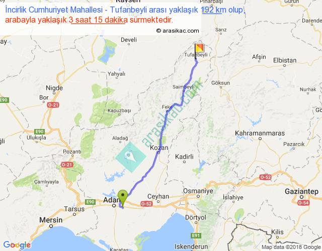 Eğer İncirlik Cumhuriyet Mahallesi Tufanbeyli arası ne kadar yakar (benzin/mazot) diyorsanız, kilometrede 3 ₺ yakan bir aracınız var ise 576, km'de 4 ₺ yakan bir aracınız var ise 768, km'de 5 ₺ yakan bir aracınız var ise 960 ile bu yolculuğu tamamlayabilirsiniz.