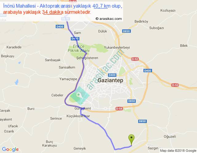 İnönü Mahallesi - Aktoprak arası yaklaşık olarak 90 km/h ile yukarıda belirtilen sürede olup, iki yerin kuş uçuşu uzaklığı (mesafesi) 29'dir. Yolculuk otobüsle 44 dakika sürmektedir.