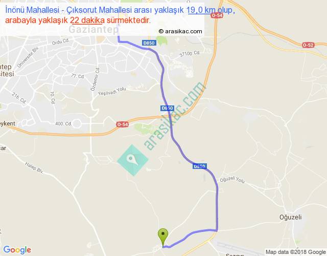 İnönü Mahallesi - Çıksorut Mahallesi arası yaklaşık olarak 90 km/h ile yukarıda belirtilen sürede olup, iki yerin kuş uçuşu uzaklığı (mesafesi) 13'dir. Yolculuk otobüsle 28 dakika sürmektedir.