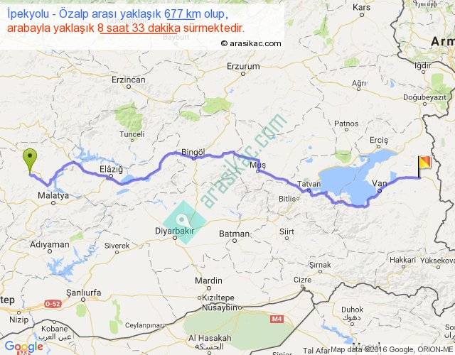 Eğer İpekyolu Özalp arası ne kadar yakar (benzin/mazot) diyorsanız, kilometrede 3 ₺ yakan bir aracınız var ise 2031, km'de 4 ₺ yakan bir aracınız var ise 2708, km'de 5 ₺ yakan bir aracınız var ise 3385 ile bu yolculuğu tamamlayabilirsiniz.