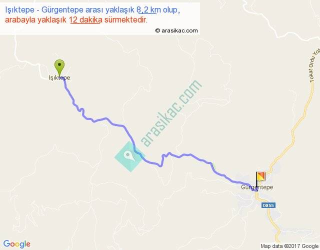 Işıktepe - Gürgentepe arası yaklaşık olarak 90 km/h ile yukarıda belirtilen sürede olup, iki yerin kuş uçuşu uzaklığı (mesafesi) 6'dir. Yolculuk otobüsle 15 dakika sürmektedir.