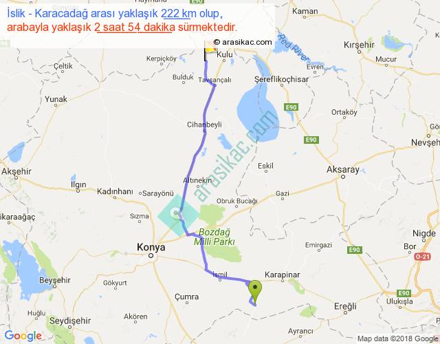 İslik - Karacadağ arası yaklaşık olarak 90 km/h ile yukarıda belirtilen sürede olup, iki yerin kuş uçuşu uzaklığı (mesafesi) 172'dir. Yolculuk otobüsle 3 saat 46 dakika sürmektedir.